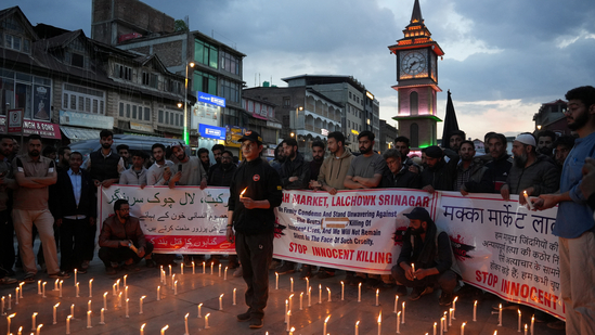 Pahalgam attack News live: Kashmiri traders hold a candlelight vigil to condemn the attack on tourists, following a suspected militant attack near Pahalgam, in Srinagar April 23, 2025.